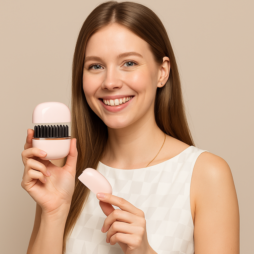 Avec notre mini brosse lissante, vous transformez vos cheveux de ternes et indisciplinés à lisses et soignés en quelques secondes. Compacte, sûre et facile à utiliser, elle vous suit partout pour que votre coiffure soit toujours impeccable – à la maison comme en déplacement. 💁♀️✨